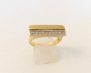 Bague en or 750 mil. ornée d’un rubis ovale (chauffé) en demi serti clos épaulé de diamants brillantés. (TDD : 56). 5,9 g brut