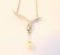 Collier en or gris 750 mil. centré d’un motif noué retenant une perle de culture blanche rehaussé d’une pierre blanche. (Longueur : 46 cm). (Traces de colle à la base de la perle). 8,7 g brut