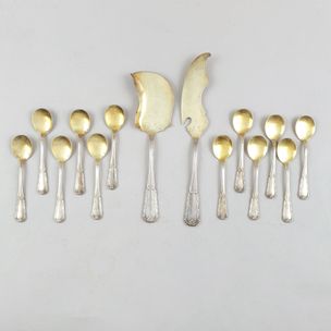 Service à glace en métal argenté et doré, modèle v