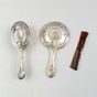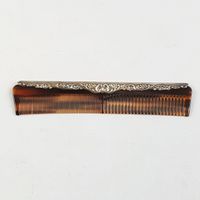 CARRS, SHEFFIELD, GB, vers 2001 : Necessaire de toilette en argent (925 mil.) fourré de style guirlande comprenant 1 miroir à main (glace en TBE, L. 23.8 cm), 1 brosse à cheveux (bois, L. 22.5 cm) et 1 peigne (résine, L. 17.2 cm). Poinçons anglais post 1958, lettre date b. Poids brut total : 459.8 g. TBE. Non chiffré.