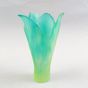 DAUM, France, époque contemporaine : vase « AMARYLLIS » en pâte de verre à dégradé de vert, Signé à la base. Petit modèle. H. 16 cm. Dimensions : 7.5 à 9.7 cm au col. Boite de rangement grise d’origine. TBE.