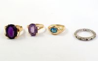 4 Bagues 2 ors 750 mil. (Améthystes, topaze, diama