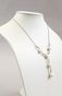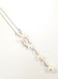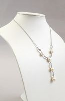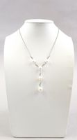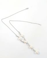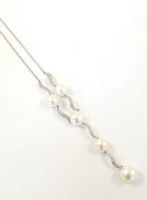 Collier en or gris 750 mil à maille jaseron centré d’un motif en chute orné de perles de culture blanche et ponctué de diamants tailles brillant et 8/8. (Longueur : 42 cm environ). 12,3 g. brut