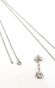 Collier en platine 850 mil à maille forçat. (Longueur : 47 cm environ). 4,4 g. Pendentif or 750 mil et platine 850 mil figurant un nœud diamanté rehaussé de roses retenant en chute un diamant taille ancienne de 0,40 carat environ. (Hauteur : 2,6 cm environ). 1,4 g. brut Poids total brut : 5,8 g.
