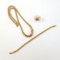 Lot en or 750 mil : Bague chevalière (diamant taille 8/8) (TDD : 60) (déformations), Collier et Bracelet à maille palmier (Longueurs : 44,5 et 18 cm environ) (chocs). 44,7 g. brut