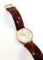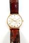 Montre-bracelet d’homme OMEGA « Seamaster De Ville » en métal doré, boîtier rond, lunette lisse, cadran argenté rayonnant à chiffres arabes, guichet dateur à 3H, mouvement automatique, sur bracelet cuir marron usé à boucle ardillon siglée. (Diamètre boîtier : 34 mm environ). (Usures, cadran fêlé, oxydations).