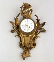 Cartel d'applique en bronze doré de style rocaille à décor de fleurettes et feuilles d'acanthes, le cadran émaillé blanc signé "Victor Gellé, A la Porte Montmartre, Paris". Vers 1900. Dimensions : 48 x 34 cm.