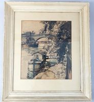 Claude BILS (1884-1968) "Toulouse, péniche amarrée"  Aquarelle, signée en bas à droite, située et datée. Dimensions (à vue) : 36 x 31 cm. (Encadrée)