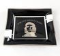 ELIE BLEU Deux cendriers à cigares rectangulaires en porcelaine de Limoges émaillée polychrome représentant Che Guevara sur fond noir et "La Flor de Alba" sur fond bleu, signés. Dimensions : 19,5 x 16 cm.
