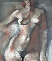 Georges OUDOT (1928-2004) "Modèle nu au drapé" Fusain, craie et sanguine, signé en bas à gauche. Dimensions (à vue) : 51 x 31 cm. (Encadrée)