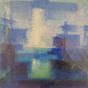 Nat LEEB (1906-1990) "Les voiles bleues" Technique mixte sur toile, signée en bas à droite, titrée et datée 1947. Dimensions : 46,5 x 55 cm. (Encadrée)