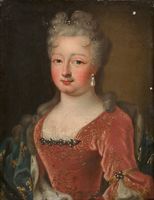 École FRANCAISE du début du XVIIIe siècle Portrait d’une jeune femme, membre de la famille royaleHuile sur toile. Cadre ancien (redoré). 40 x 32,5 cm. (Petits accidents, restaurations)
