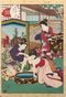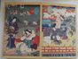 JAPONAlbum comprenant cent planches, dont :- Page de titre et cinquante-quatre oban tate-e par Utagawa Kunisada II (1823 -1880) de la série Murasaki shikibu Genji karuta. Les cartes Genji de Murasaki Shikibu. Signés Baichoto Kunisada ga, éditeur Tsutaya Kichizo, cachet de censeur aratame. - Trente-quatre oban tate-e par Utagawa Kunisada (1786 -1864) et Miyagi Gengyo (1817 -1880), de la série Mitate Sanjurokku sen. Correspondances des trente-six poèmes. Signés Kochoro Toyokuni hitsu, Ichiyosai Toyokuni ga, Utagawa Toyokuni hitsu, éditeur Sagamiya Tokichi. - Dix oban tate-e par Toyokuni III, Ameyadori haru no michizure. Pluie soudaine et rencontres du nouvel an. Signés Toyokuni ga, éditeur Ebisuya Shochishi, cachet de censeur aratame.