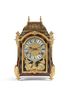 PENDULE dite religieuse, à décor marqueté en laiton sur fond d’écaille de tortue teintée rouge, de rinceaux, vrilles et enroulements, cygnes et singes musiciens. Ornementation de bronzes redorés tels que plumets, coquilles, feuilles d’acanthe, pots à feux, masques, allégories et amour. Mouvement signé Balthazar Martinot à Paris. Époque Louis XIV. H. 66 cm. L. 42,5 cm. P. 18 cm. (Nombreuses restaurations, vitre en façade en plexiglass) Balthazar Martinot dit l’Aîné (Rouen 1636 - Saint-Germain-en-Laye 1714) est un horloger français qui fonda la plus longue dynastie de l’histoire de l’horlogerie. Valet de chambre-horloger ordinaire de la reine Anne d'Autriche puis horloger ordinaire du roi, Balthazar Martinot était considéré comme l'un des plus talentueux horlogers d’Europe.