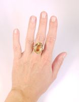 Bague en or 750 mil orné d’une important quartz en serti griffes. (TDD – anneau réglable - : 58). (Egrisures, rayures). 10,3 g. brut Bague en or 375 mil centrée d’une importante citrine en serti griffes, la corbeille ajourée d’une frise végétale. (TDD : 59). 8 g. brut Poids total brut : 18,3 g.