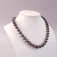 Collier d’un rang de perles de culture grises, fermoir en or 585 mil. (Longueur : 47 cm environ ; Diamètres perles : 10.5 mm environ). 71,2 g. brut