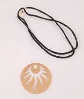Pendentif CHOPARD « Happy Sun » en or rose 750 mil, de forme circulaire, à décor ajouré d’un soleil. Signé et numéroté. (Diamètre : 4,2 cm environ). 19,9 g. Joint : Cordon en cuir noir usé à fermoir en argent dispensé de contrôle (Article 524 bis du CGI al. c). 2,3 g. brut