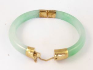 20 / 30 €Bracelet rigide ouvrant en pierre décorative verte (pierre cassée et recollée), fermoir métal.