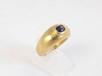 Bague jonc en or 750 mil centrée d'un saphir cabochon (TDD : 56). 8,5 g brut.