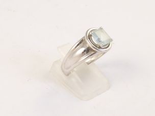 Bague jonc en or gris 750 mil centrée d'un saphir