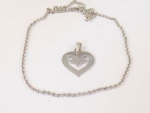 Tour de cou lanière en or gris 750 mil (Long : 44 cms environ), pendentif en or gris 750 mil orné d'un cabochon de pierre décorative bleue épaulé par des cabochons pierres décortaives vertes (Haut : 6 cms environ). 40,6 g brut.