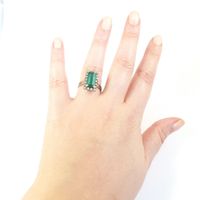 Bague en or gris 750 mil. à chaton rectangulaire sertie d’une tourmaline verte dans un entourage de diamants 8/8. (TDD : 55). (Egrisures). 6,4 g. brut