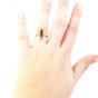 Broche en or 750 mil. à décor de feuilles de vigne ponctuée d’améthystes (manque une pierre) et bague en or 750 mil. sertie d’une pierre fine rose dans un entourage de semences de perle. (Manque une perle, monture coupée). 6,8 g. brut