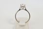 Bague en or gris 750 millièmes ornée d'un diamant rond de taille brillant entre quatre griffes. Tour de doigt : 50. Poids brut : 2,8 g. Accompagné d'un rapport Diamant de CGL n° 21769 de juin 2020 précisant : - Masse : 0,90 ct - Couleur : I - Pureté : VVS2 - Fluorescence : Aucune - Dimensions : 6,16-6,20 x 3,78 mm