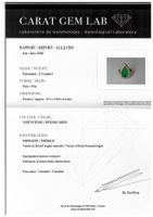 Bague en or jaune 750 millièmes ornée au centre d'une émeraude de forme poire sertie clos dans un pavage de diamants ronds de taille brillant. (Égrisures et usures). Tour de doigt : 53 1/2. Poids brut : 9,2 g. Accompagné d'un Rapport CGL n° 21789 de juin 2020 précisant : - Masse : estimation : 3,50 ct. - Couleur : vert intense - Provenance : Colombie - Imprégnation mineure constatée - Dimensions : 15,1 x 10,0 x 4,4 mm