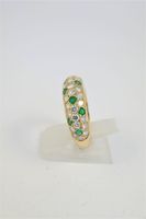 CARTIER Bague « jonc » en or jaune 750 millièmes, le centre orné d'un pavage de diamants ronds de taille brillant et émeraudes. (Égrisures et usure à la monture). Signée et numérotée. Tour de doigt : 53. Poids brut : 6,5 g