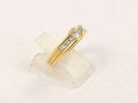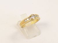 Bague jonc en or 750 mil centrée d'un diamant (environ 0,20 carat) épaulé d'une ligne de diamants princesse (TDD : 50). 6,3 g. brut