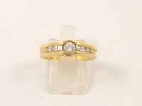 Bague jonc en or 750 mil centrée d'un diamant (env