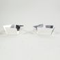CHRISTOFLE, Collection MIROIR pour la Maison de champagne RUINART : paire de dessous de bouteille en métal argenté non chiffrés de forme géométrique moderniste à cinq facettes de tailles différentes. Signés Christofle et RUINART. Poinçon de Maître de la maison Christofle et de fabricant post 1983. Dans leur housse, boite et carton avec carte explicative. La plus grande largeur : 15 cm. H. la plus haute : 5.8 cm. TBE, quasi neuf. Designer Hervé Van der Straeten.