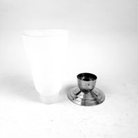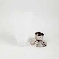 CHRISTOFLE, FOLIO, période contemporaine : photophore en métal argenté et verre dépoli blanc. La base ronde à gradins. Signé et poinçons notamment de responsabilité d’après la réforme du poinçon carré de 1983. H. 26.5 cm. Diam. 13 cm. Boîte d’origine. TBE, quasi neuf.
