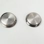 CHRISTOFLE, période contemporaine : 2 petites montres rondes en métal chromé à insérer dans une pendulette, cadran blanc, mouvement quartz. Diam. 4 cm.