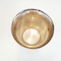 Seau à champagne en métal argenté, modèle tulipe à piédouche rond godronné, le col à moulures de filets, les anses annulaires mobiles. Travail du XXe siècle. H. 23.8 cm. Diam. au col : 20 cm. Légères rayures. TBE. Non chiffré.