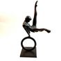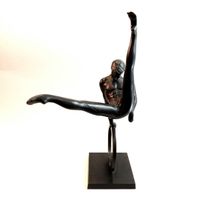 Ecole française XXe, « Gymnastes en équilibre » deux épreuves en bronze à patine noire sur socle. Monogrammés « A », dont un portant un numéro. Hauteurs : 67 et 49 cm. [Un Gymnaste semblable de la collection de l’hôtel Plaza a été vendu par Artcurial en 2013]