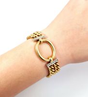Bracelet 2 ors 750 mil. à double chaîne alternée de lignes de diamants 8/8 et d’anneaux. (Longueur : 17,5 cm). 80,2 g. brut