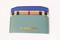 BURBERRY : Porte-carte en cuir bleu vert et tartan beige. Bon état.