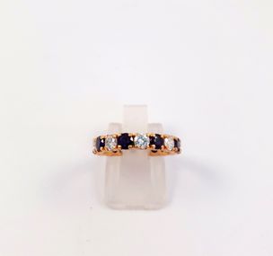 Bague bandeau ajourée 2 ors 750 mil ponctuée de di