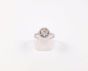 Bague solitaire en or gris 750 mil centrée d’un diamant taille brillant de 0.50 carat environ, entouré et épaulé de diamants taille brillant. (TDD : 56). (Pierre centrale cassée, manques de matière). 3,6 g. brut