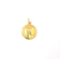 Médaille religieuse en or 750 mil figurant un profil de la Vierge Marie. Signée BECKER. (Hauteur : 2,7 cm environ). 3,3 g.