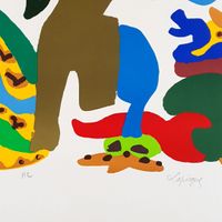 Charles LAPICQUE (1898-1988) "La chasse au Snark", 1970, Lithographie signée en bas à droite et annotée H.C. Dimensions : 64,5 x 49,5 cm. (Petite pliure en haut à gauche). (Non encadrée).