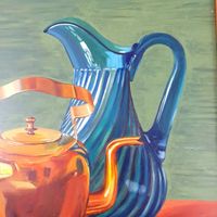 Claude LEPAPE (1913-1994) "Nature morte au pichet et verseuse" Huile sur isorel, signée en bas à droite. Dimensions : 46 x 38 cm. (Encadrée).