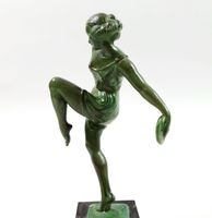 Pierre LE FAGUAYS (1892-1962) "Danseuse aux cymbales" Régule à patine verte, cachet "Favral" sur la terrasse et marque "Le Verrier", sur un socle cubique en marbre veiné noir. Hauteur : 21,5 cm. Hauteur totale : 27 cm.