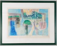 Shoichi HASEGAWA (1929) "Dans les jardins" Lithographie en couleurs, signée en bas à droite, titrée et numérotée 34/130. Dimensions (à vue) : 37 x 52 cm. (Encadrée).