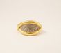 Bague 2 ors 750 mil à pavage central de diamants taille brillant. (TDD : 60). 5,4 g. brut Pendentif Cœur en or 750 mil serti de diamants taille brillant. (Hauteur : 2 cm environ). 2,5 g. brut Poids total brut : 7,9 g.