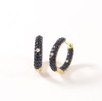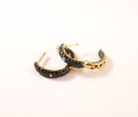 Paire de créoles en or 750 mil pavées de saphirs ronds, ponctuées de diamants taille brillant. (Hauteur : 1,5 cm environ). 3,9 g. brut