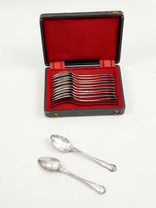 ARGENTERIE XVIIIe, XIXe et ART DECO, porte huilier Paris 1781 JEAN CHEVALLIER, Ménagère ART DECO HENIN, Service à thé-café ODIOT, Plats ODIOT, CHRISTOFLE (ménagère Malmaison, seau à champagne FOLIO, Couverts CHINON, FIDELIO, MARLY, SPATOURS, RUBANS, candélabre DUPERIER, service café BAGATELLE, panier à bouteille, couvert à ragoût, décapsuleurs, plateau MALMAISON , Nappe PALATINO ronde, paire de flambeaux SECOND EMPIRE), RAVINET d’ENFERT, BOULENGER, ERCUIS, ARGENTAL, Ménagère années 1930 182 pièces LE MONDIAL, SILENT BUTLER, couverts uniplat argent XIXe, ménagère ROGERS Kings, boîte à biscuit Produx, pique-fleur, coupe à fruits, cuillers à moka, petites cuillers G. W. ADAMS, SOLINGEN, HERMES, Suite de 12 cuillers à moka NORVEGE 1900 émail cloisonné, pelles à asperges, pelles à fraise, DEGRENNE, CHABANNE, serpe à glace RUSSIE fin XIXe ERIK KOLLIN, Service à glace Russie saint-Petersbourg NICHOLS & PLINKE, gobelets de chasse, ménagère SOUFFLOT rocaille asymétrique 94 pièces en argent 1900, cuiller à eau DEBAIN, couteau à fromage TALLOIS & MAYENCE, JUDAICA (HAZORFIM), saucière TETARD, BESSEREAU, Plateau CHINE XIXe, Mallette à Pique-Nique ASPREY, CLEAVE ARMOIRIES de l'ESWATINI, théière BLAKE, JUDAICA, MENORAH MERDINGER argent et Verre à kiddouch argent par HAZORFIM mignonette VEYRAT, plateau à fromages ST-MEDARD, 12 cuillers à sauce individuelles, boite à pilules, service à thé 3 pièces 1921 SHEFFIELD par J & T, seau à biscuit PRODUX, service de naissance, cachet, ronds de serviette, timbales, gobelets liqueur 1er EMPIRE L.J BERGER, Fourchettes à homard, sucriers, pots à lait, confiturier, plateau, cuillers à thé vermeil, pelle à thé… BACCARAT (MASSENA, PALERME), SAINT-LOUIS (carafe MANHATTAN), LALIQUE (FLORIDE), LES TORIS TOQUES, HAVILAND CLAIR DE LUNE ARCADES, ROYAL CHELSEA, WINTERLING, GIEN, R. CAPODIMONTE, PORCELAINE DE LIMOGES, LE TALLEC.