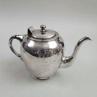 CAYCIA, AMERIQUE LATINE, XXe siècle : service à thé café en argent 925 mil. uni, comprenant 1 théière (H. 12.5 cm) (bagues en bois), 1 cafetière ovoïde (H. 17 cm) (manque les bagues, restauration à la charnière soudée du couvercle), 1 sucrier couvert (H. 7.5 cm) (déformations) et 1 pot à lait sans son couvercle (H. 6 cm) (déformations). Modèle boule à fond plat, les anses à agrafe feuillagée et frétels toupie. Poinçon de titre et de Maître. Cygne. Poids brut total : 1808.8 g. Rayures d’usage. Non chiffré.